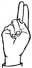 На ћирилици написано МИНА МЕЧАНИН састоји се из 11 слова [?]. Исписано ћириличном једноручном азбуком за глувонеме: